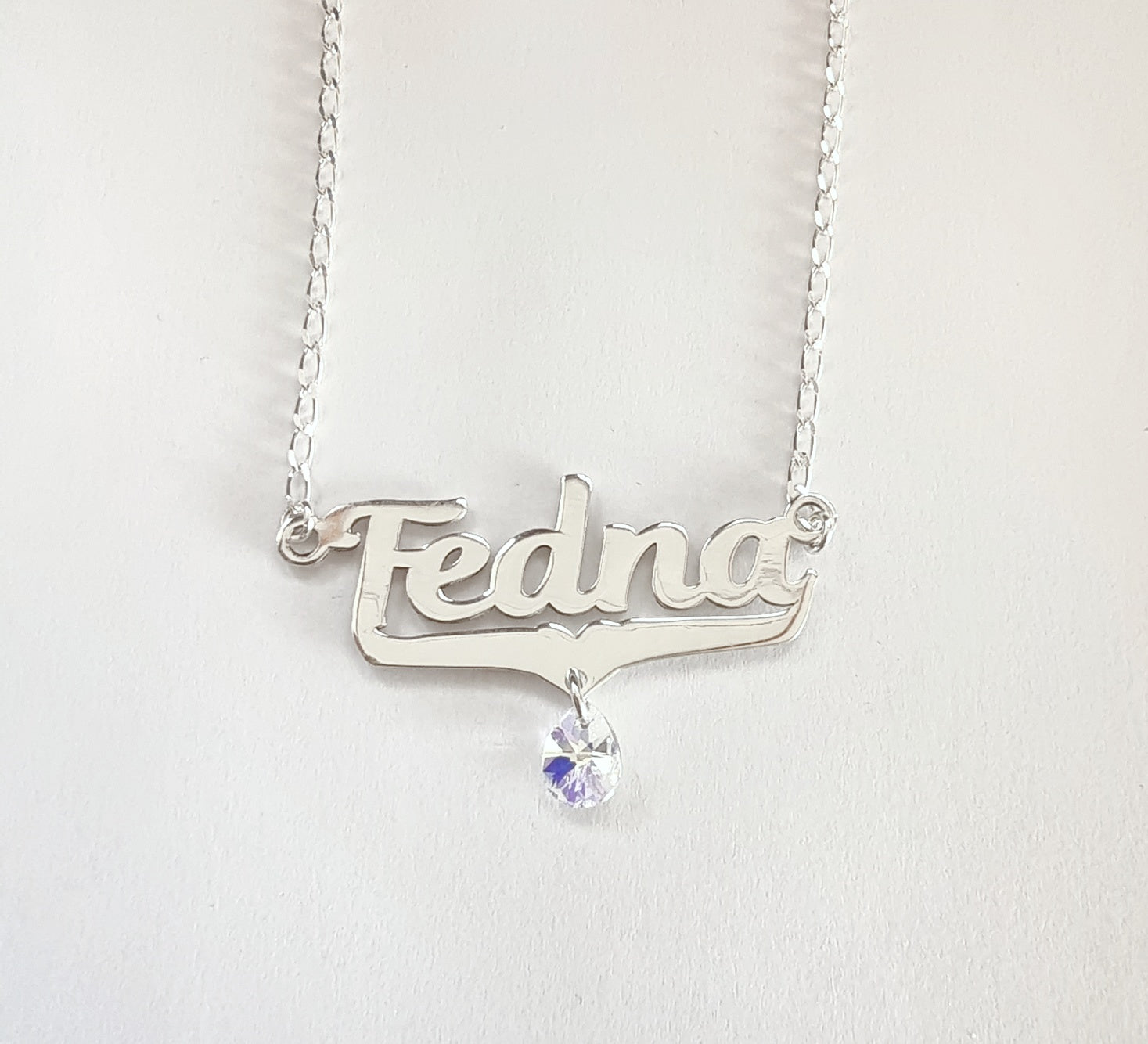 Nombre personalizado con cristal y cadena plata pura
