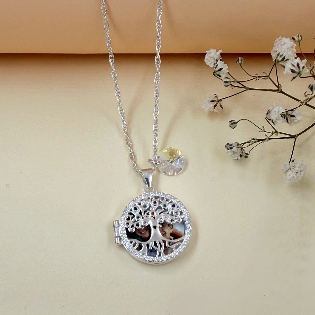 Un relicario que une la fuerza del Árbol de la Vida con tus recuerdos más preciados.